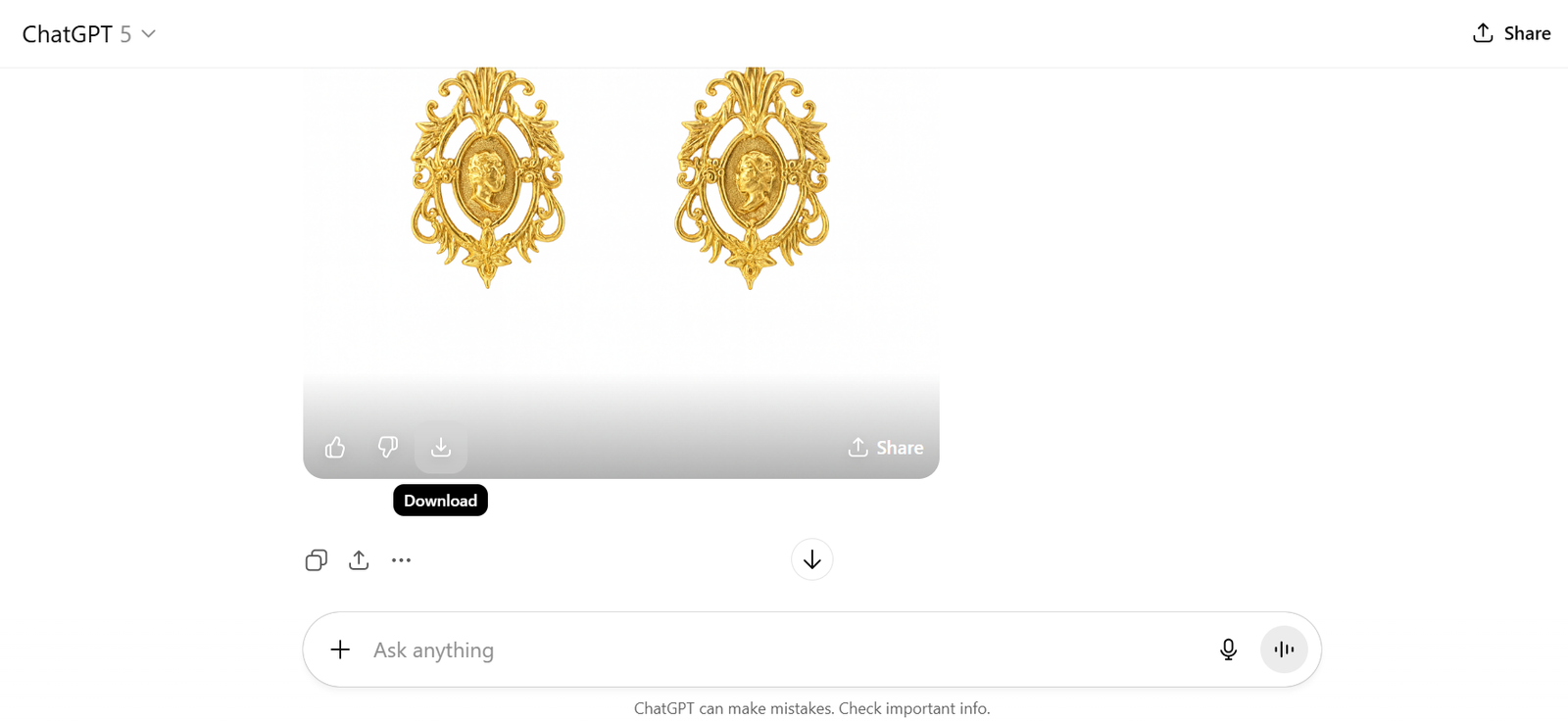 Now you can ask ChatGPT to make changes to your earrings. Some examples: